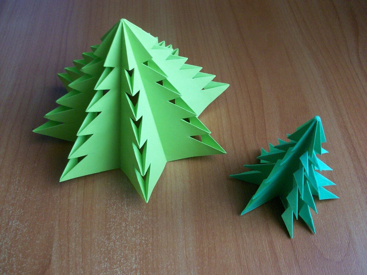 Оригами елка из бумаги простая